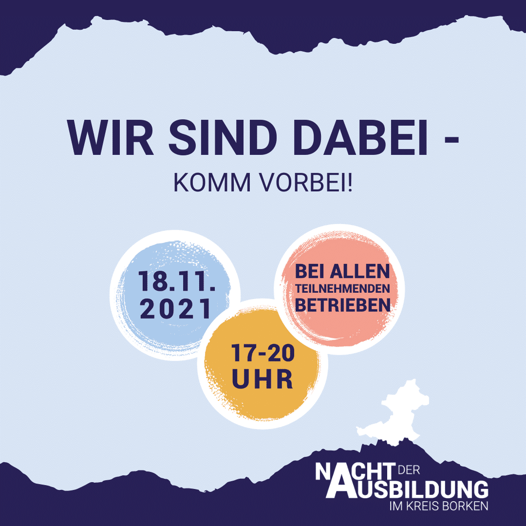 We invite you to our company! What awaits you? You can get a picture of us directly on site, get an exciting insight into our apprenticeship professions and also try out some things. Maybe we are exactly your future training company!